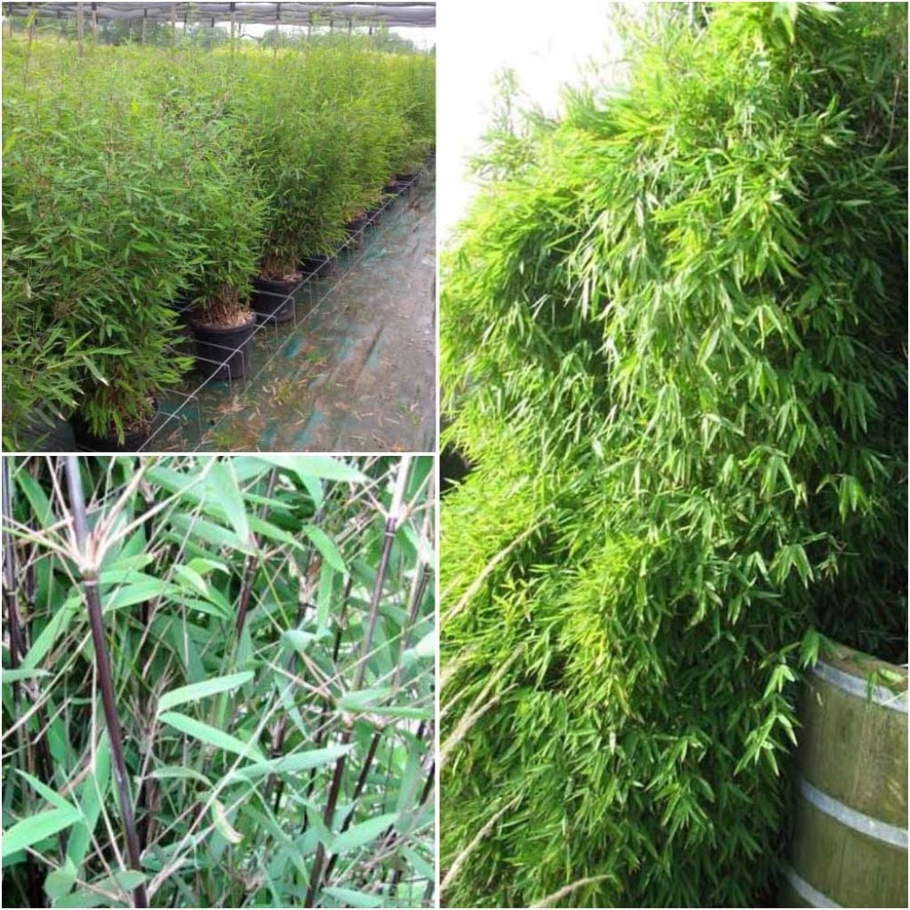 Le Fargesia nitida Black Pearl est une nouvelle variété de Bambou non traçant d’une exceptionnelle valeur décorative. Sa taille modeste ne l’empêche pas de montrer une croissance vigoureuse et un port très touffu. Ce qui rend cette variété unique, ce sont ses cannes particulièrement sombres, de couleur prune foncé, quasiment noires. Son feuillage persistant d’un vert foncé bleuté achève de faire de ce bambou une très belle créature végétale pour la mi-ombre. Comme tous les Fargesia, il pousse rapidement en hauteur mais s’étend lentement au fil des années sans jamais devenir envahissant. Installez-le dans un pot sur la terrasse ou exposez-le en isolé, comme une oeuvre d’art.